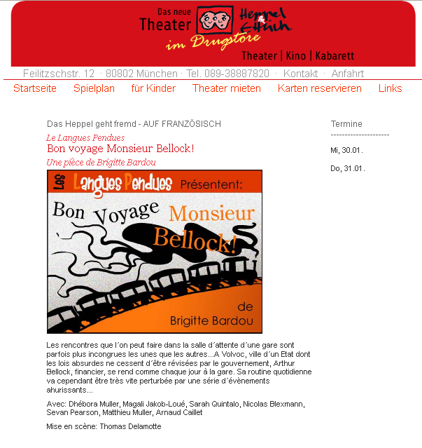 Je n'ai pas toutes les affiches des représentations de mes pièces et peu de photos. Si vous passez par là et avez joué une de mes pièces, n'hésitez pas à m'en faire parvenir...D'avance, merci !